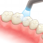 レーザーによるむし歯治療は、麻酔を少なくし痛み無くむし歯の除去できる他、削る量を必要最小限にし、将来のむし歯の再発防止にも効果的です。またフッ素を併用することにより、 フッ素の歯質への取り込み効果が高まります。
